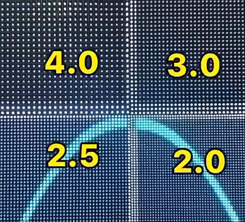 Viewing distance < 1m: Use < P1.2 Viewing distance 1.5m: Use < P1.5 or P1.8 Viewing distance within 2m: Use < P2.0 or P1.8 For indoor use beyond 2 meters, P2.5 is recommended and offers the best value for money. Other options like P3, P4, etc., are no longer mainstream products in the industry. (P4 is the most common choice for outdoor use)